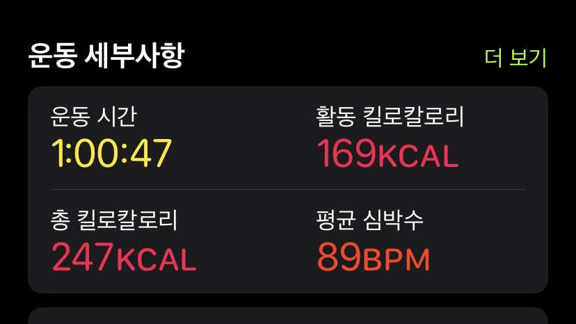 칼로리 소모도 평소보다는 약간 낮은 편이다!